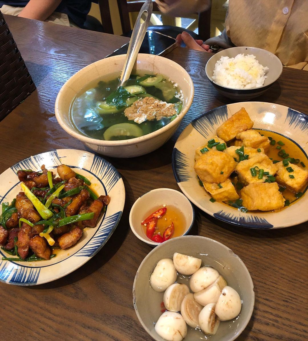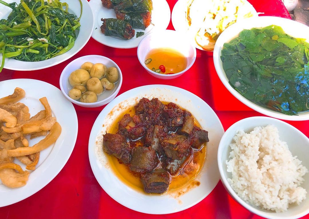 Món ăn nổi bật: canh cua, bò xào dưa, rau muống xào tỏi