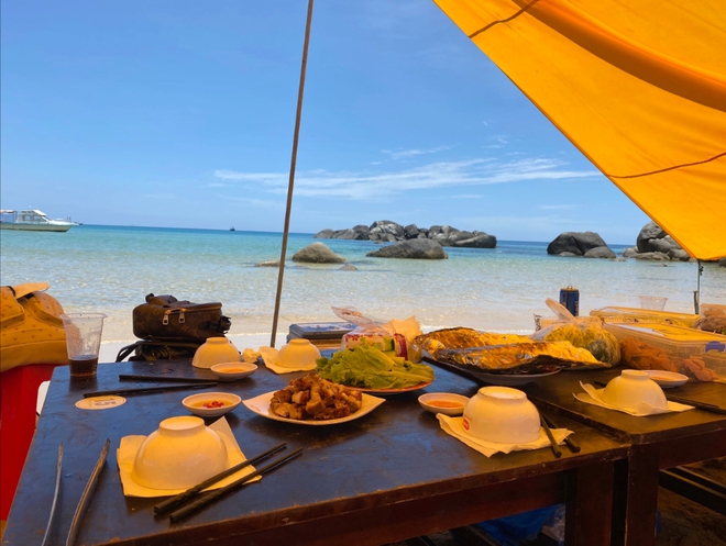 Sau một ngày dài hoạt động, du khách có thể quay về đất liền và tổ chức cắm trại. Thực phẩm có thể được mua từ cảng cá Đề Gi hoặc thưởng thức chính những “chiến lợi phẩm” du khách bắt được trong quá trình săn bắt cùng ngư dân. Các món hải sản thường được người dân địa phương hỗ trợ chế biến đơn giản như hấp hoặc nướng để giữ được nguyên vị tươi ngọt của chúng.
