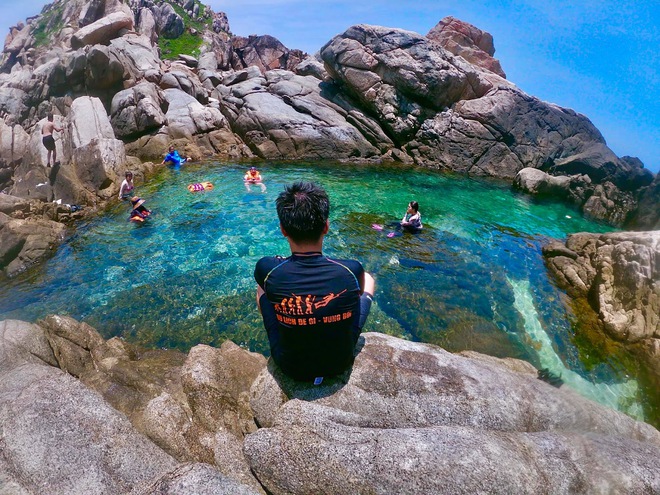 Du khách vừa có thể bơi lội, vừa ngắm nhìn những rặng san hô hay những đàn cá nhỏ bơi lội ngay trước mắt mình, qua làn nước trong xanh.