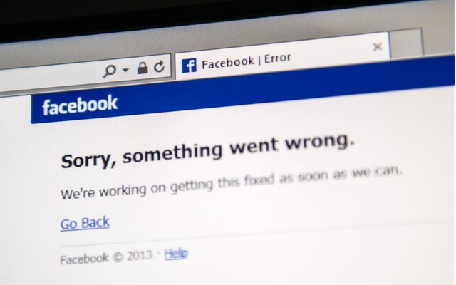 Giao diện Facebook hiển thị thông tin cho biết đang bị lỗi.