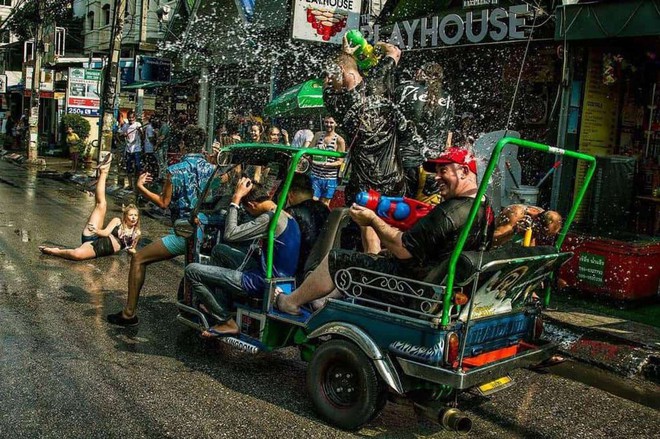 Đến Thái Lan vào dịp lễ Songkran chắc chắn bạn không thể bỏ qua những "tiết mục" té nước đặc trưng. Lê Hữu Chính, một du khách đến từ Hà Nội, đã từng 2 năm liên tiếp tham gia lễ hội vào năm 2018 và 2019, chia sẻ: "Vào dịp Songkran thì bạn đừng mong người mình sẽ khô ráo khi bước chân ra đường, vì bất cứ lúc nào, kể cả khi vừa ra khỏi khách sạn thì những xô nước và những khẩu súng nước luôn sẵn sàng hất và bắn về phía bạn. Vì vậy hãy sắm ngay những khẩu súng phun nước với công suất càng mạnh càng tốt để cùng vui chơi với tất cả mọi người."