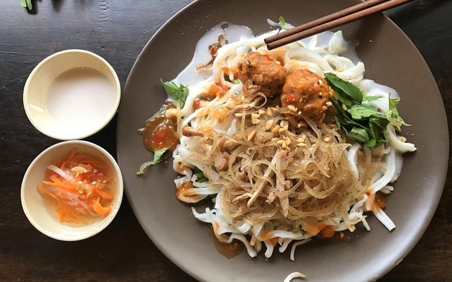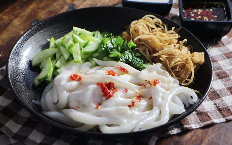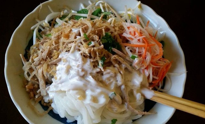 Sau khi trộn đều, cả bì cùng nước cốt dừa sẽ hoà lẫn vào từng sợi bánh. Vừa thưởng thức vừa cảm nhận cái dai dai, thơm thơm đan xen cùng vị ngọt béo hấp dẫn dần dần bung tỏa nơi cổ họng. Thêm vào rau sống giòn giòn, đậu phộng rang bùi bùi những là đã hội tụ đủ đầy mọi yếu tố khiến người ta mê mẩn.