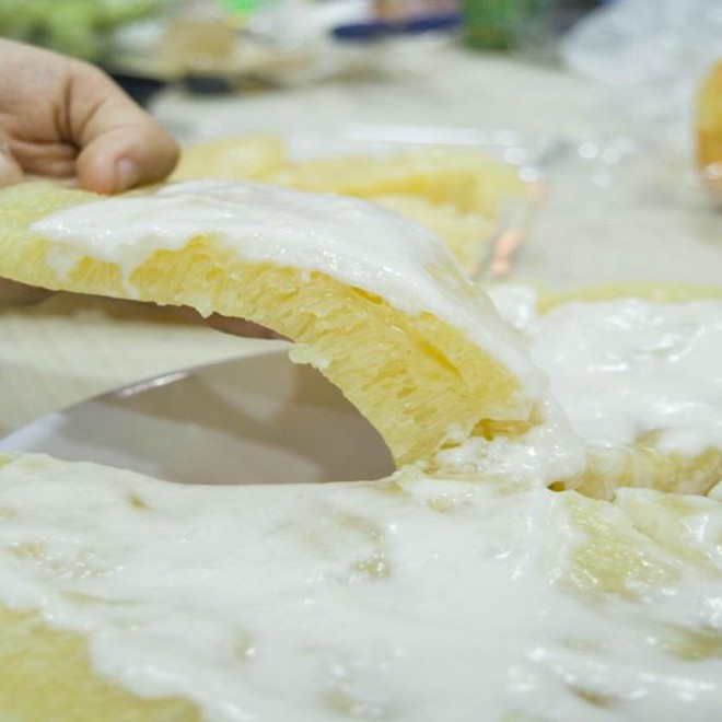 Nhưng đặc sắc nhất là khi rưới thêm làn cốt dừa đã được nấu chín và hòa cùng bột năng sền sệt, ấm nóng. Nước dừa béo béo chan hòa cùng lớp bánh nở xốp, thật chẳng thể chê vào đâu. Bánh bò thường được bán ở ven đường Điện Biên Phủ (quận 3) vào buổi sáng hoặc bạn có thể order tại các shop online để thưởng thức món ăn này nhé!