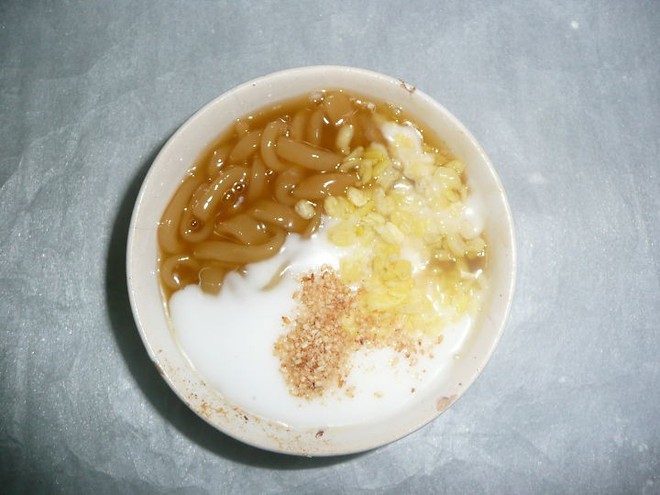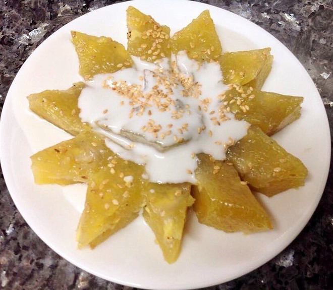 Nhưng miếng bánh chuối hấp chẳng thể "thành công" nếu thiếu đi phần nước cốt dừa sánh sệt, ấm nóng ăn cùng. Cái béo ngậy, mằn mặn tan chảy nơi đầu lưỡi vừa làm độ hấp dẫn tăng lên gấp bội. Một ít đậu phộng rang nghiền mịn, hạt mè giòn giòn sẽ là điểm nhấn chốt lại hương vị.