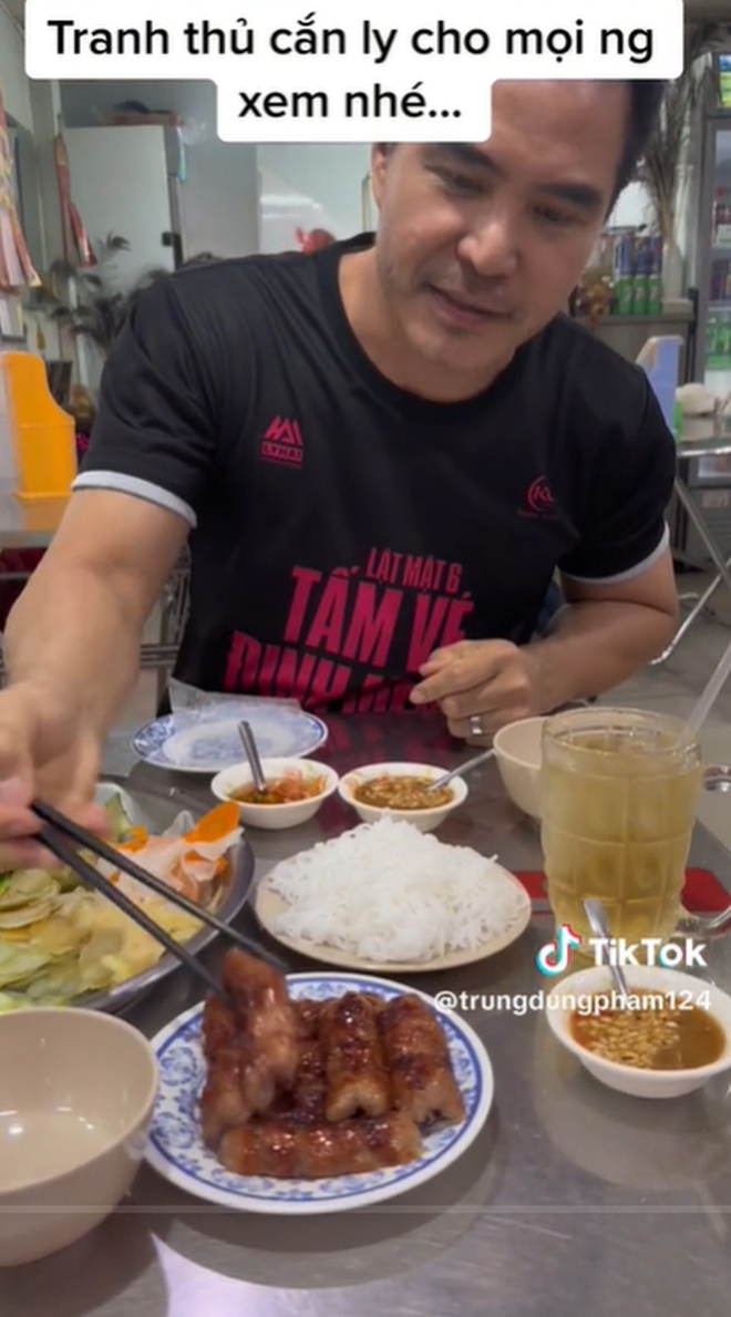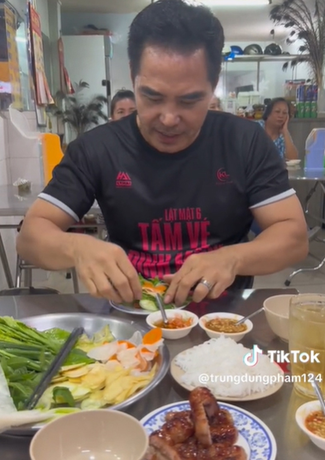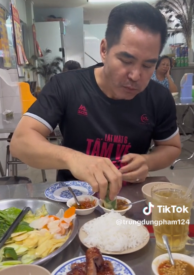 Theo đó, ngôi sao Lật Mặt đã chọn ăn ở quán nem nướng ngay trung tâm thành phố Vĩnh Long. Theo lời chia sẻ của Trung Dũng, anh đã ăn ở đây từ thời còn trẻ, nhiều người quen cũng hay lui tới quán, nhưng lần này vẫn muốn thử lại.
