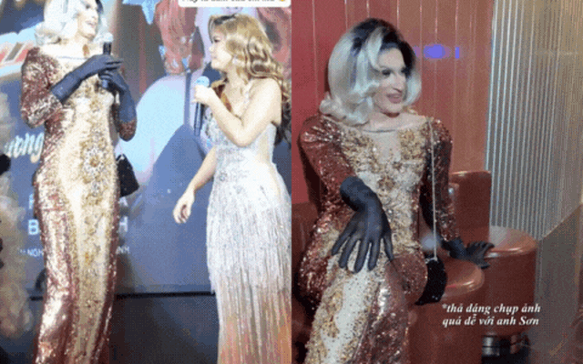 Trong đoạn clip lan truyền, Sean Trace bất ngờ xuất hiện trong chiếc đầm sequin lấp lánh, đội tóc giả bạch kim và trang điểm chỉn chu chẳng khác nào một "drag queen" chuyên nghiệp. Từ cách bước đi uyển chuyển, vung tay nhẹ nhàng cho đến dáng ngồi nghiêng đầu, ông xã Phương Vy đều toát lên sự điệu đà chẳng kém một cô gái thực thụ.