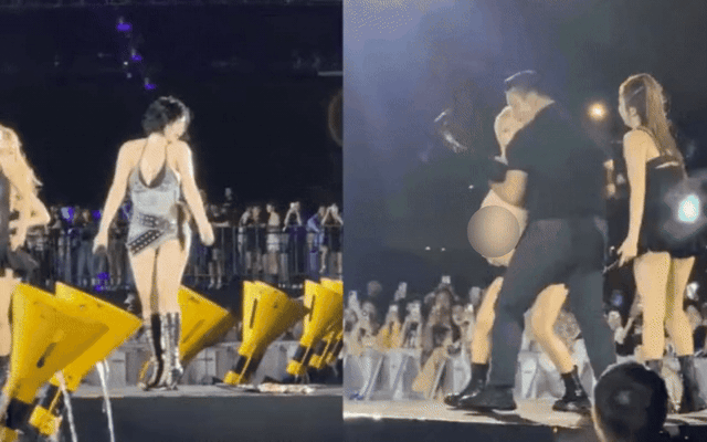 Nữ ca sĩ bất ngờ ngã gục xuống sân khấu khiến 2 nữ vũ công vô cùng hoang mang. Bảo an nhanh chóng lao lên sân khấu bế HyunA đã bất tỉnh rời đi