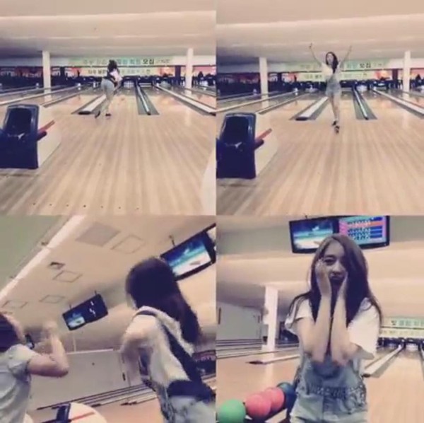 JiYeon khoe clip siêu đáng yêu khi cô nàng đạt Strike khi chơi bowling