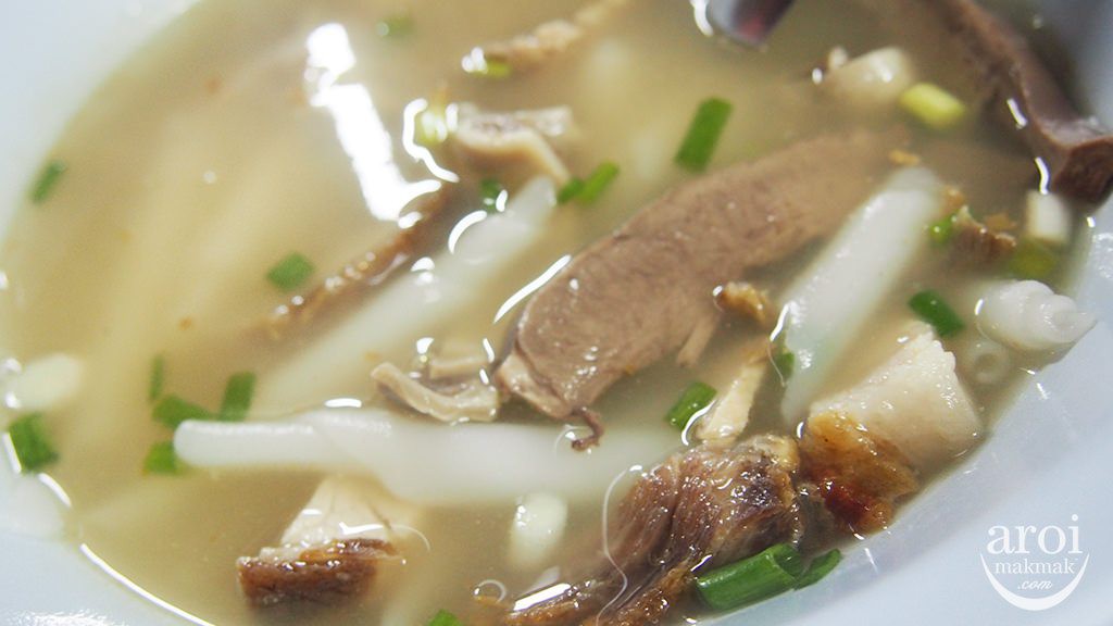 Khác với phiên bản của Singapore, món Kway Chap này rất thơm và ăn kèm với bánh canh kiểu Thái (rice noodles) cùng nhiều phần khác nhau của thịt lợn. Nước dùng của phiên bản Guay Jub Auan Pochana đậm đà, có vị cay nhẹ do dùng ớt Thái. Hơi khó để diễn tả sự khác biệt của ớt Thái, nhưng nhiều người cho rằng nó có vị thơm, và đây là hương vị khiến nhiều người phải quay lại ăn lần hai nên nếu bạn thích vị cay thì đây là món nên thử.