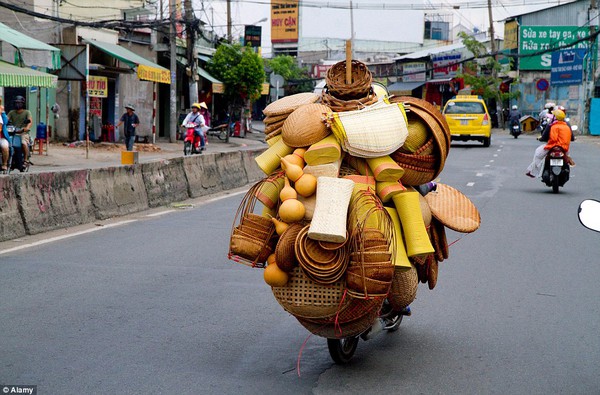Tại Việt Nam, xe máy là phương tiện giao thông chủ yếu và dường như tất cả những người tham gia giao thông đều rất chuyên nghiệp trong việc chở đồ.