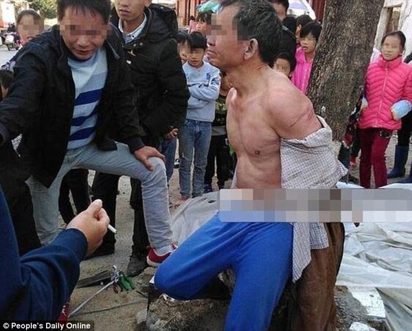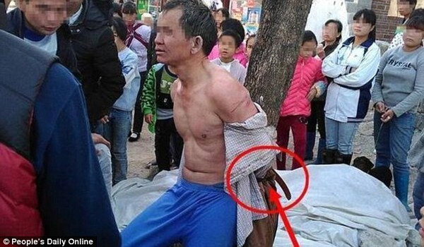 Thế nhưng, thật không may cho tên trộm, khi hắn vừa mới lục được 4.000 tệ (khoảng 13,8 triệu đồng) trong tủ thì bị chủ nhà vô tình quay về nhà bắt tại trận. Nạn nhân thấy vậy liền hô hoán cho dân làng đến vây bắt tên trộm. Sau khi bị bắt, dân làng lột áo của tên trộm rồi trói hắn vào gốc cây giữa mùa đông lạnh giá, đồng thời đeo hết các công cụ hành nghề của hắn lên cổ để thị chúng. Rất nhiều người dân đã vây xem dung mạo của tên trộm và xôn xao bàn tán về cách xử phạt có tính răn đe này.