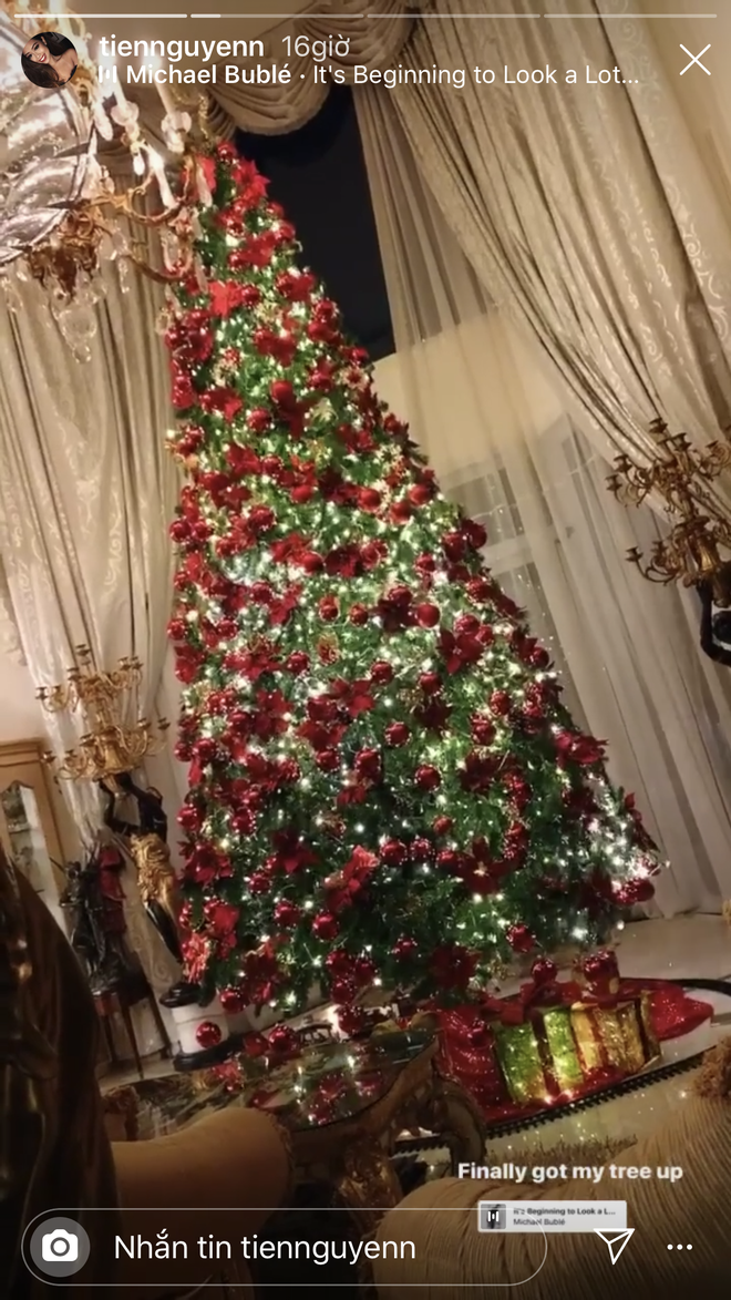 Đáng chú ý nhất là màn khoe cây thông to gần đụng trần nhà của ái nữ em chồng Hà Tăng - Tiên Nguyễn. Đặt hẳn cây thông Noel trong nhà thì chắc chắn không gian cũng phải rất hoành tráng.