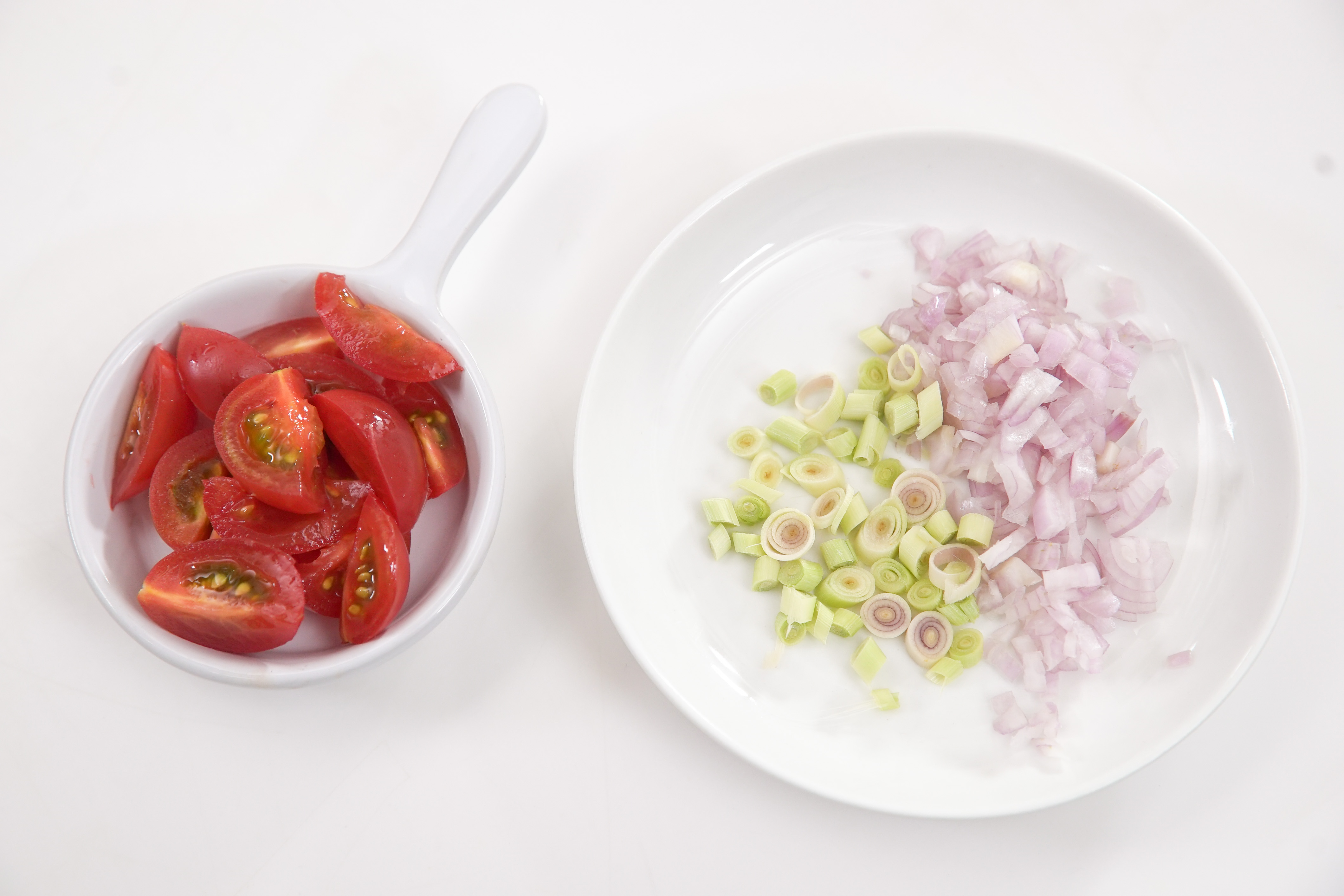 Cà chua bi bổ làm 4.