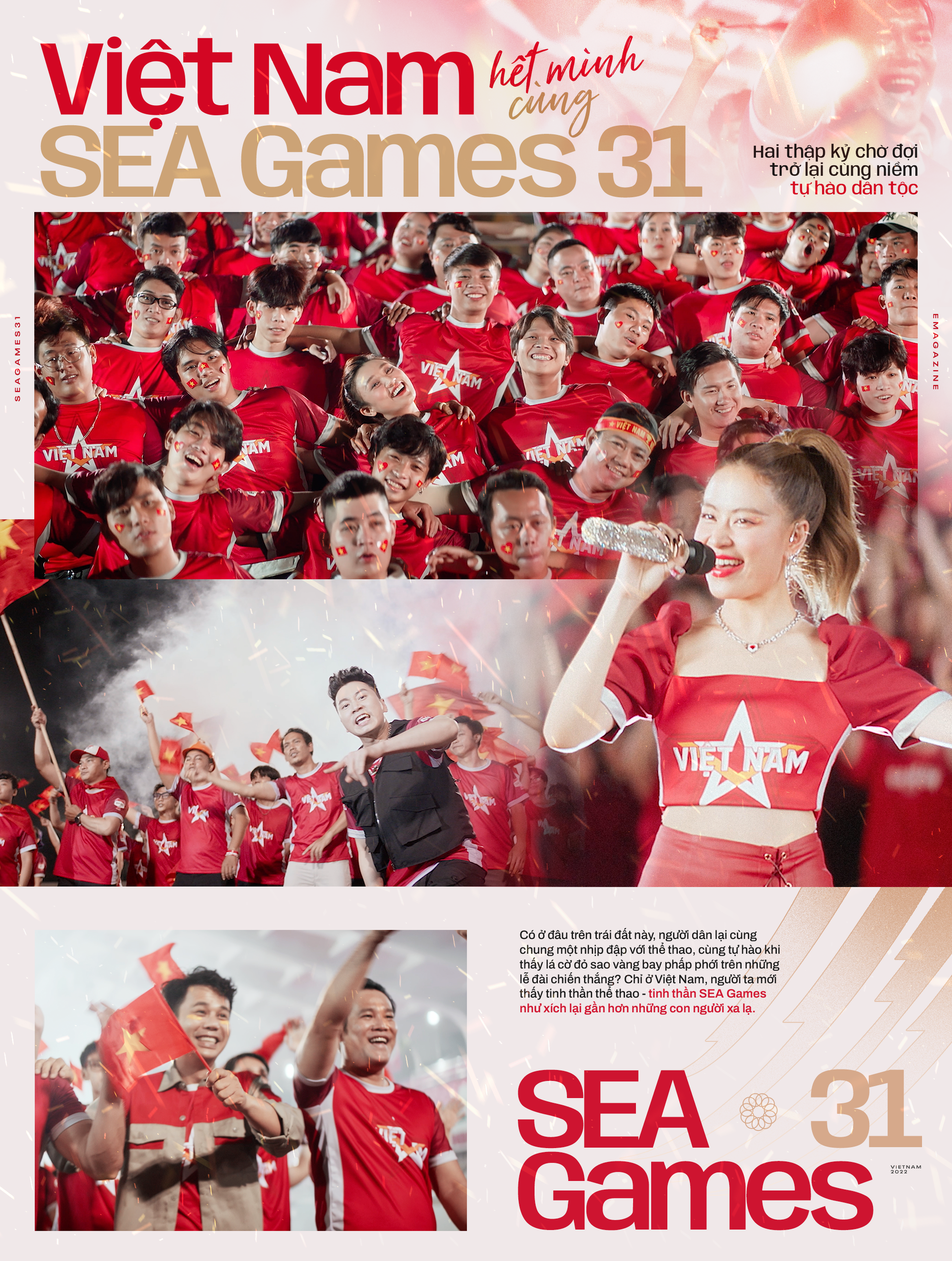 Tháng 5 mang nắng về trên phố phường Hà Nội, tháng 5 đưa trái tim người hâm mộ hướng về thủ đô, cùng hướng về sân vận động Mỹ Đình cho lễ khai mạc SEA Games. Với người hâm mộ thể thao, đó là một sự kiện đặc biệt họ đã chờ đợi suốt 2 năm, bao lần hoãn lại vì dịch bệnh rồi cuối cùng cũng chuẩn bị đến ngày khai mạc. Với người Việt Nam, SEA Games đã vượt ra ngoài một sự kiện thể thao khu vực - nó đã trở thành sợi dây gắn kết con người Việt, nơi sức mạnh của tập thể và sự đồng lòng của cả dân tộc được đề cao. Nhìn những lá cờ đỏ sao vàng rợp trời khắp phố phường, trái tim bao người Việt lại cùng thổn thức. Các vận động viên "khát" một cơn mưa vàng, hàng triệu người Việt "khát" những tiếng hò reo, đồng lòng chung một niềm hân hoan sau những tháng ngày khó khăn vì đại dịch. Khắp nơi nơi, người dân Việt Nam đang hết mình vì một sự kiện thành công, vì một niềm tự hào của đất nước.