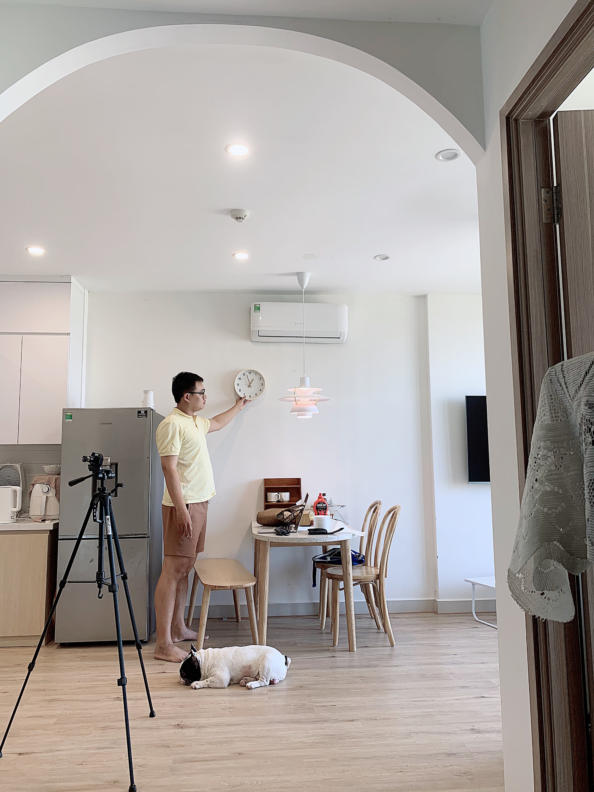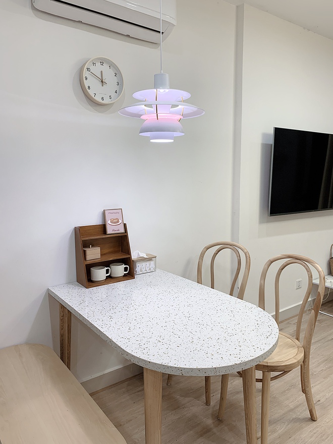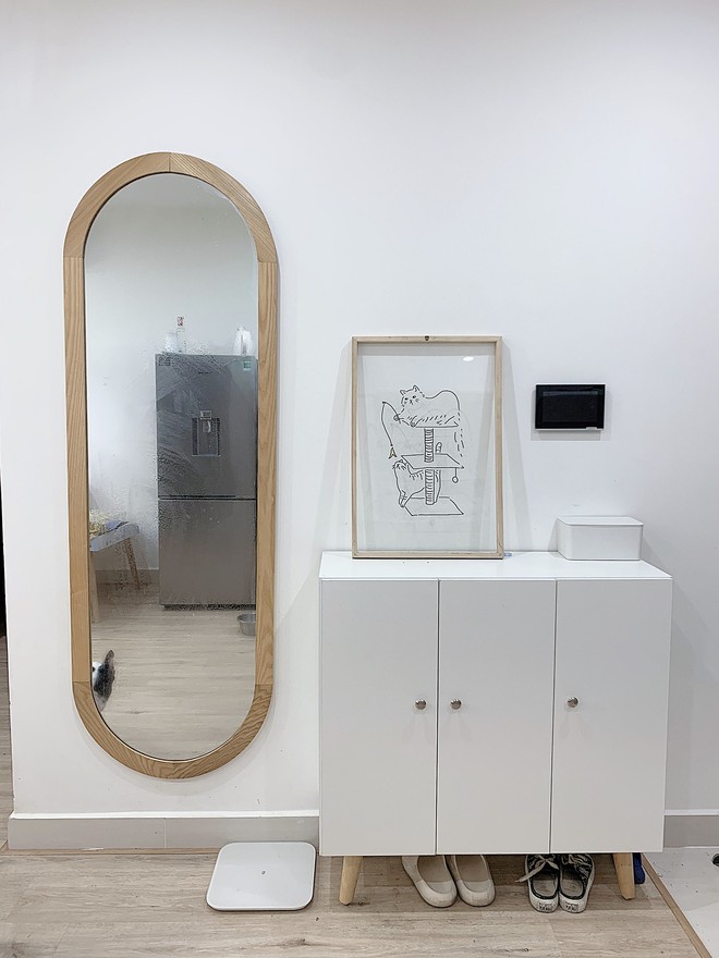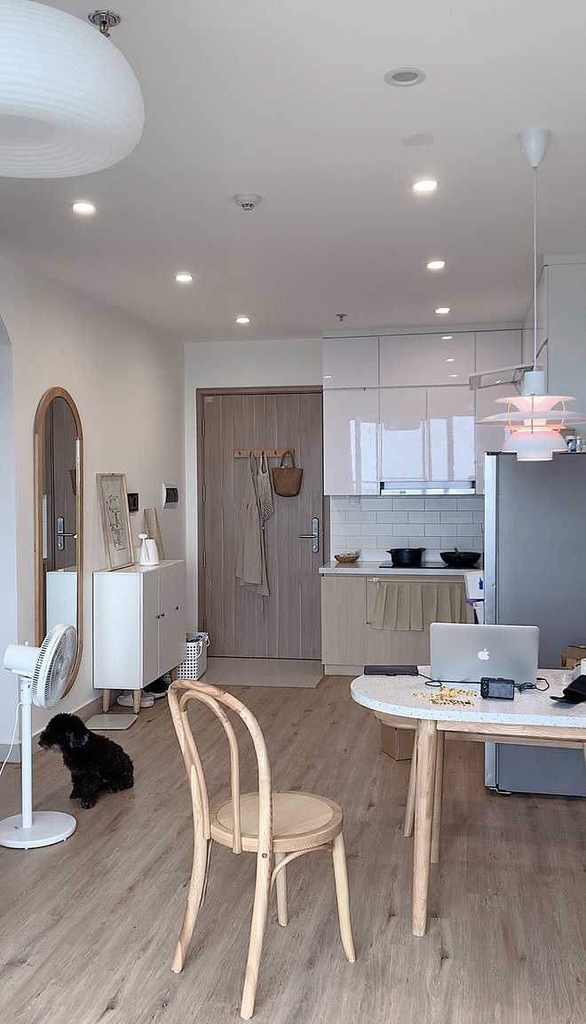 Được biết, khi nhận từ chủ nhà, căn hộ đã có nội thất khá cơ bản. Gia đình Quỳnh Phương mới gần đây có sửa sang lại thêm một chút để có không gian sống phù hợp với nhu cầu cũng như cảm giác thuộc về nơi đây hơn. Căn hộ đã được ốp lại sàn gỗ, dán tủ bếp, ốp gạch bếp, lắp đèn trần,... "Thay đổi một chút giúp ngôi nhà xinh xắn hơn, để đi đâu cũng chỉ thích về nhà. Lưu ý khi sửa nhà, hãy xin phép chủ nhà trước. May mắn, chủ nhà mình khá dễ nên thoải mái trong việc cải tạo và cũng không đi nghiệm thu sau khi xây dựng".